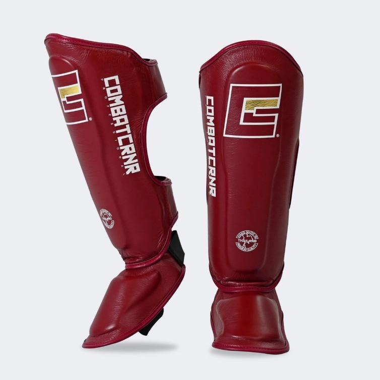 Professional grade Muay Thai shin guards expert craftsmanship from Bangkok, Thailand.  The sleek contoured form fitting design with shock absorbing dual layer padding offers amazing protection and unimpeded movement.