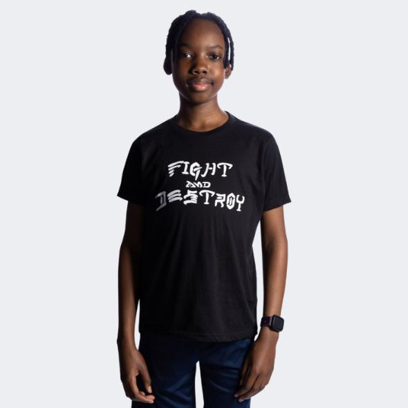 Super comfortable and fitting ring spun cotton/poly t-shirt with a nostalgic center chest Fight and Destroy imprint.