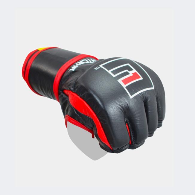 Professional 4 ounce leather mixed martial arts competition glove. Curved designed helps keep a relaxed hand position and fingers tucked also adding in making a tight fist for optimum power. Fully opening wrist allows for easy on and off with hands wrapped and sufficient space in the hand compartment. Performance, comfort, power & safety all in one glove.