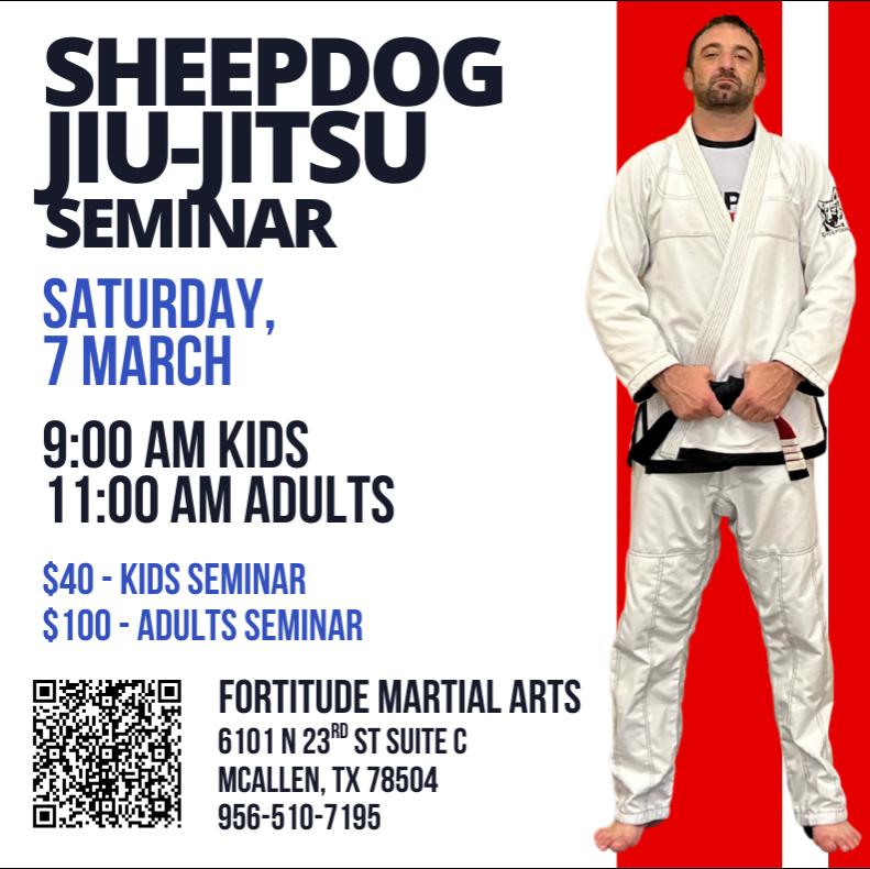 This seminar will be on March 7th with Professor Blake Hayes. Must have a white Fortitude association Gi. The start time is 9:00 AM for kids and 11:00 AM for adults. The price is $40 for kids and $100 adults. For non-members, the price for kids is $80 and for adults the price is $150.